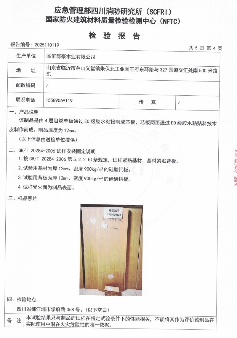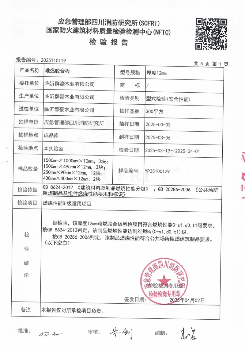 2025難燃膠合板12厘檢測報告